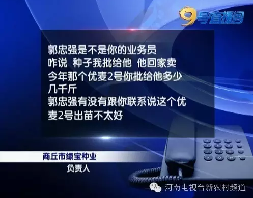 第二天记者在商丘种子大市场找到了绿宝种业,可这位负责人说,因为闻集乡村民的种子不是从他这买的,所以村民应该去找郭忠强,而对于这个优麦2号种子的来源他是这样说的。是店铺却大门紧锁,记者又通过电话联系上了绿宝种业负责人。