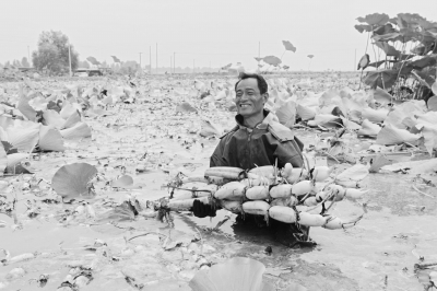 11月2日,河南省孟州市会昌街道东曹村东豫莲藕种植合作社社员正在收获莲藕。时下,该村合作社1000余亩莲藕喜获丰收,亩产1500公斤,亩收入达6000余元。近年来,该村及周边村许多村民通过莲藕种植走上了致富路。