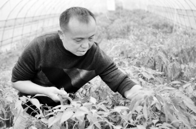 11月17日,贵州省锦屏县钟灵乡阳艾村杨涵江正在自家的蔬菜大棚里采摘辣椒。据了解,今年他家种了30个大棚8亩地的无公害蔬菜,品种主要有辣椒、红菜薹、茄瓜等8个品种,辐射带动周边21户贫困户种植大棚蔬菜30亩。目前,鲜椒供不应求,每公斤批发价5元,按照每亩收鲜椒200公斤计算,仅鲜椒一项就能为21户贫困户创收80多万元。