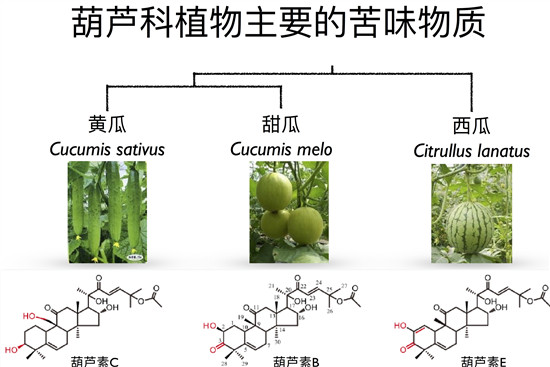 在获得初次成功后,尚轶小组迅速投入另一个重要科学问题研究中:葫芦科其他植物如西瓜、甜瓜等是否存在类似的分子机制?如果是,则意味着可借鉴黄瓜苦味研究成果,在其他作物中也实现可操控的无苦味品种培育方案,彻底解决苦味对葫芦科作物商品品质的影响。经过两年时间的研究,通过综合运用多种研究手段,他们揭示了葫芦科植物具有非常相似的苦味性状驯化历史。利用这一趋同驯化的特点,育种家可实现对西瓜、甜瓜根中和果实中的苦味性状分别进行精确调节。一方面确保果实中不积累苦味物质,保证商品品质;另一方面提高根中的苦味含量用于抵御土壤中的病菌、害虫的侵害。此外,该研究首次利用比较基因组学阐明了不同苦味物质间结构细微差异产生的原因,为系统解析结构异常丰富的植物次生代谢产物多样性也提供了重要借鉴。