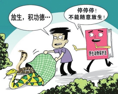 新法规定,随意放生野生动物,造成他人人身、财产损害或者危害生态系统的,依法承担法律责任。林业部门表示,外来物种放生问题,以往执法部门只是规劝,以后就更加有约束力了。该规定还意味着,选择放生地点前,需经过评估,适合放生才能放;而以往放哪里怎么放没有规定,有的地方就曾出现有人放生一大批蛇,让附近居民很担心的事情。