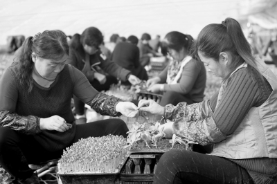 1月11日,河北阜城县康美瓜果种植合作社社员在育苗温棚内嫁接瓜苗。近年来,国家级扶贫开发重点县——阜城县依托区域瓜果生产特色,大力推广瓜果集约化育苗技术,采用“基地+合作社+农户”模式,推行瓜果种苗“订单培育”。目前,阜城县已建成年育苗能力2000万株以上的集约化瓜果育苗基地3家,年培育优质瓜果种苗近1亿株,年产值达7800万元,带动2600余农户增收致富。 新华社记者朱旭东摄