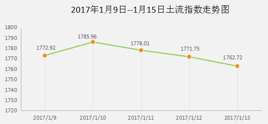 本周土流指数日均为1774.27,较上周平均上涨1个百分点。周内 “土流网·土地流转指数”从2017年1月9日的1772.92到6日的1762.72,下降10个基点。
