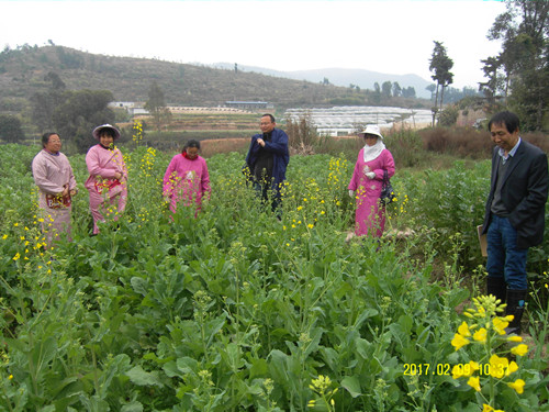 2017年2月9日玉溪市种子管理站组织市、区持证种子检验员到红塔区李棋街道山头居委会上山头村段家逵农户油菜种植田间,对其承担的2016~2017年度市级救灾备荒储备油菜“花油6号”种子纯度进行田间小区种植现场鉴定。整个鉴定工作严格按照《农作物种子检验规程》(GB/T 3543.5-1995)的程序规定,首先仔细数清鉴定小区内的供检总株数,然后对每一植株进行认真细致的观察比对和鉴定,从中分辨出异品种株等;鉴定中,认真做好各项记录和复核工作,然后计算出种植鉴定小区的品种纯度。鉴定结果:2016~2017年度市级救灾备荒储备油菜 “花油6号” 种子田间小区种植鉴定种子纯度为97.5%,达到了国家《农作物种子质量标准》(GB4407.2-2008)之规定和种子标签标注值符合《农作物种子标签通则》(GB20464-2006)的要求。至此,玉溪市2016~2017年度市级救灾储备储备油菜种子纯度田间小区种植鉴定工作圆满完成。