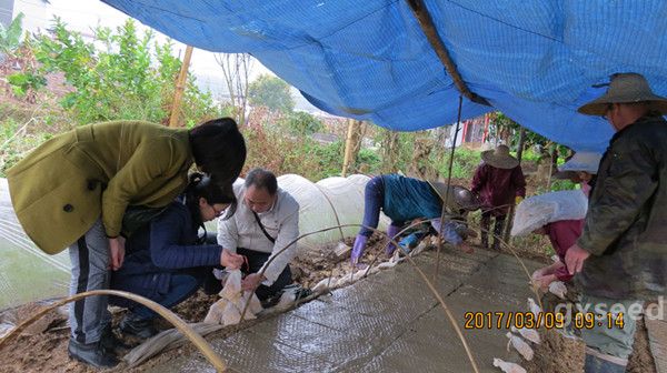 为做好我市2017年水稻种子质量鉴定圃工作,根据《自治区农业厅办公室关于印发2017年广西壮族自治区打击侵犯品种权和制售假劣种子行为专项行动实施方案的通知》(桂农业办发〔2017〕4号)及《百色市农业局办公室关于关于做好2017年水稻杂交种子质量监督抽查工作的通知》(百农办发〔2017〕5号)和《百色市农业局办公室关于印发2017年百色市打击侵犯品种权和制售假劣种子行为专项行动实施方案的通知》(百农办发〔2017〕7号)要求,百色市种子管理站组织人员对我市种子市场的主要水稻品种进行种子抽样,共抽取到84个水稻样品,在种子质量鉴定圃按照水稻种子小区种植鉴定技术规程进行田间纯度种植鉴定,鉴定圃已于3月9日完成播种。