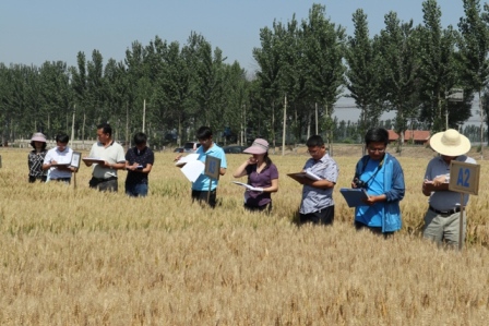 小麦品种区域试验、生产试验;2017年春小麦品种区域试验、生产试验及京津冀一体化生产试验进行考察。委员们依次考察了宝坻区种子管理站试验点、武清区种子管理站试验点(张辛庄)和天津市农作物研究所周庄试验点的试验,各试点试验人员向委员们详细介绍了小麦参试品种的整体管理等情况。在考察过程中,各位委员客观、公正的评价各参试品种,认真记录各参试品种的田间表现,为我市今年冬春小麦品种审定工作提供科学、可靠的依据。