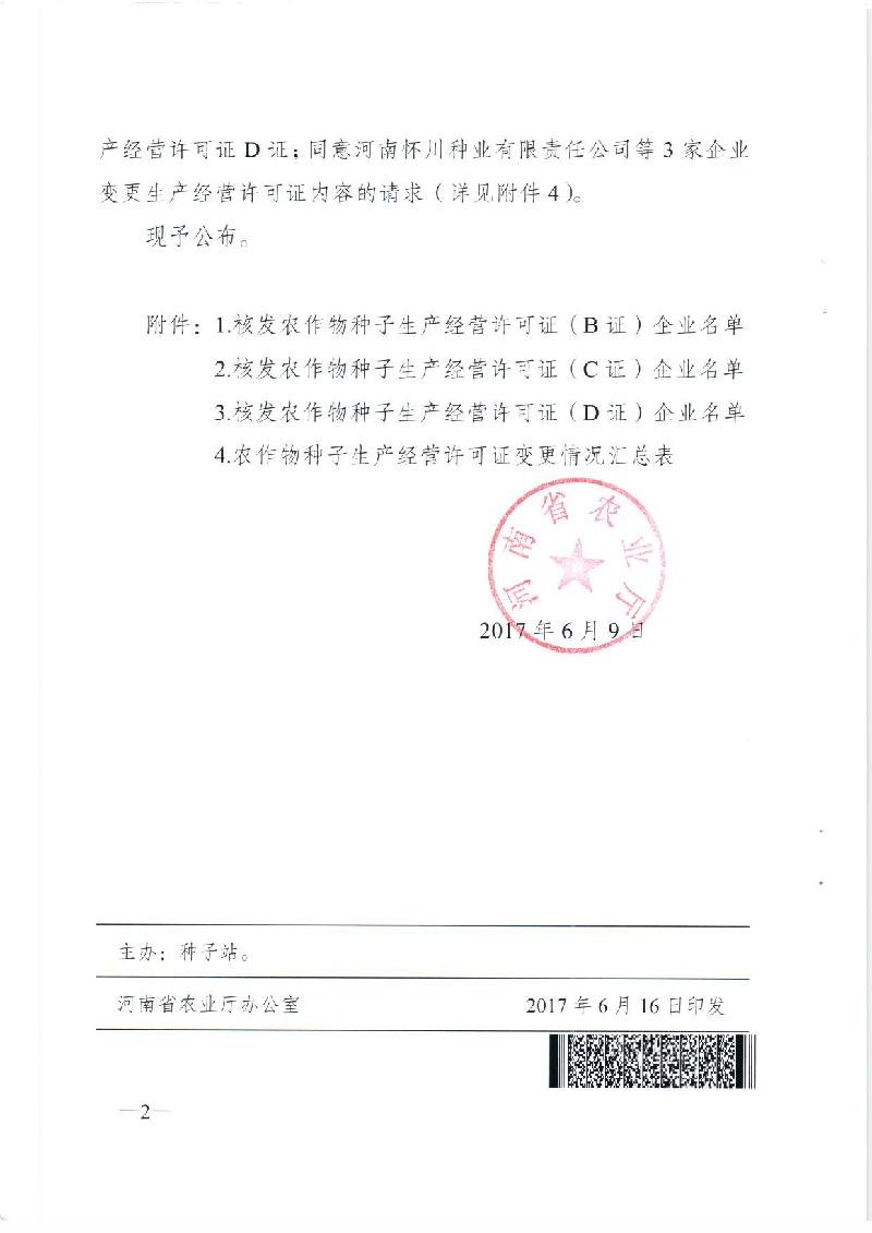 1 河南怀川种业有限责任公司 雒温生 小麦:焦麦266;玉米:怀玉5288、怀玉23、怀玉20、怀玉208
