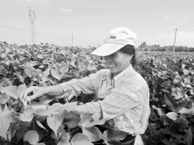 骨干企业国欣种业今年在河北省河间市杂交制种3000多亩,品种纯度高品质好,在棉种市场上有很强的竞争优势。图为女工正在进行田间授粉。 余宏章摄