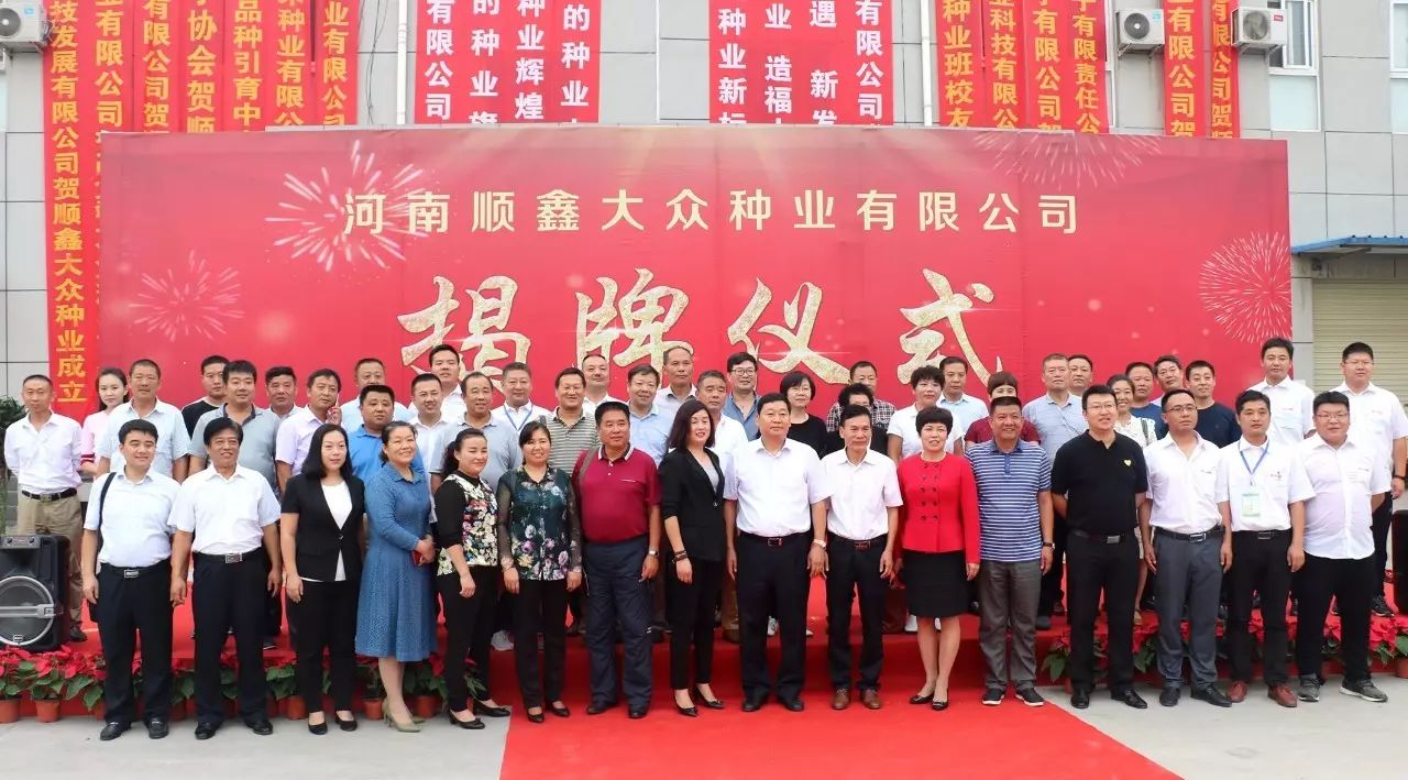 2017年9月9日上午,河南顺鑫大众种业有限公司揭牌仪式在郑州市中部生物科技园区隆重举行。北京顺鑫控股集团副总经理兼北京顺鑫国际种业总经理、河南顺鑫大众种业董事长段春仲参加仪式并为仪式揭牌。陈伟程、堵纯信、程相文、赵久然、郑天存、茹振刚等种业知名专家应邀参加揭牌仪式。河南省种子协会、郑州市种子协会等单位、北京顺鑫控股集团人员、经销商代表、中国种业商务网等新闻媒体共计300余人参加了揭牌仪式。