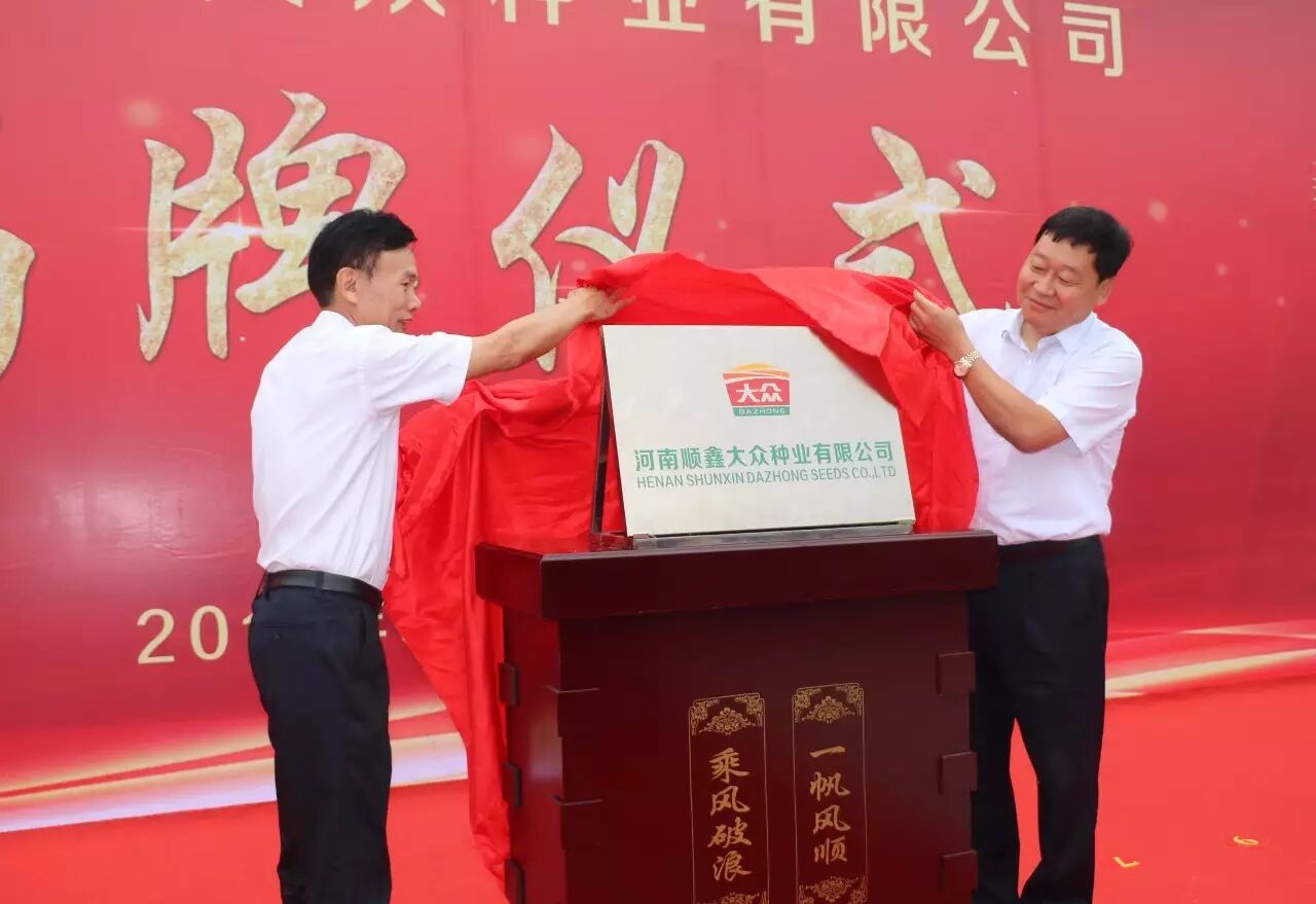 河南顺鑫大众种业董事长段春仲与总经理孙毅廷为公司揭牌