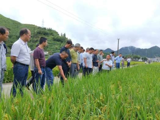 与会人员分乘两辆大巴,首先到村头镇朝坞垅畈县级水稻新品种示范片,现场考察了甬优1540高产示范现场;然后在音坑乡察畈省级水稻新品种扩展鉴定与丰产示范基地,现场观摩了华浙优1号、华中优1号两个示范品种及甬优7850、浙优21、中嘉优6号等15个展示品种。大家沿着参观路线一路走,一路看,一边认真听取项目承担单位负责人现场讲解,详细了解各品种的适应性、抗性;一边仔细察看,从各个品种的植株结构、长势长相、结实情况、抗病力等综合表现认真进行比较,从中选择出适合开化县综合性状况优良的新品种进行全面推广。