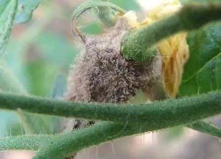 感染幼瓜快发展,密生灰霉幼瓜烂。