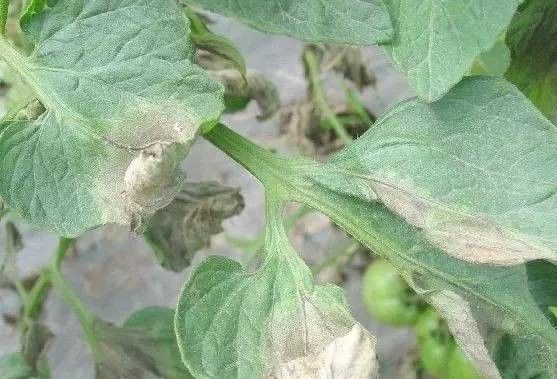 病上枝叶呈萎蔫,灰霉状物生表面。