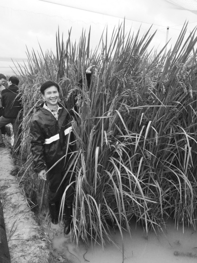 “巨型稻”明显比普通人高出一大截。本报记者郑惊鸿摄