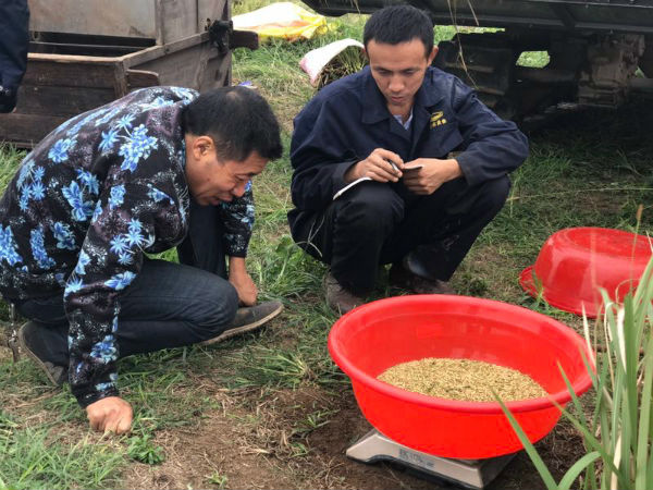 图为 项目组技术人员正在汨罗市新市镇的试验田进行测产