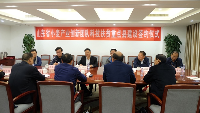 10月16日,在党的十九大即将召开之际,省小麦产业创新团队科技扶贫重点县建设签约仪式在郓城县举行。省小麦产业创新团队首席专家、山东农业大学农学院院长孔令让,菏泽市农业局副局长牛俊忠,郓城县人民政府副县长孙兆同,创新团队部分专家及菏泽市、郓城县有关部门负责人出席了签约仪式。创新团队专家成员、省种子管理总站副站长张承毅与郓城县农业局局长董成江代表双方签字。