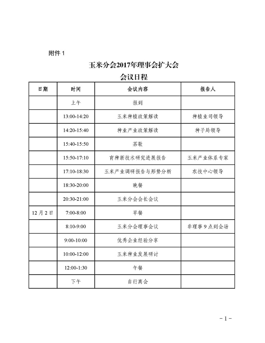 关于召开中国种子协会玉米分会2017年理事会扩大会议的通知