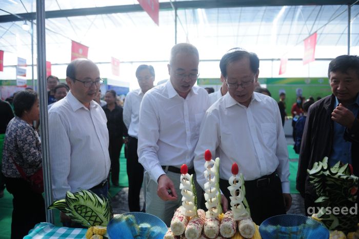 危朝安副主任参观鲜食玉米品种展示时强调,鲜食玉米口感好、营养成分高,深受广大市民喜爱,具有广阔市场前景,特别是鲜食玉米产值相对较高,对提升我区农产品附加值,深入推动产业富民、产业扶贫很有帮助,值得大力推广。广西种子管理局祁广军局长出席开幕式,并陪同参观考察。