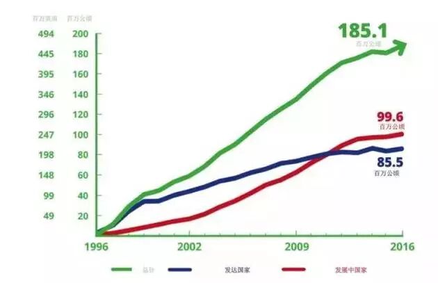 国际农业生物技术应用服务组织 (ISAAA) 此前发布的《2016年全球生物技术/转基因作物商业化发展态势》报告指出:转基因作物在21年的商业化进程中,种植面积从1996年的170万公顷迅速上升到2016年的1.851亿公顷(编者注:27.75亿亩),实现了110倍的增长。