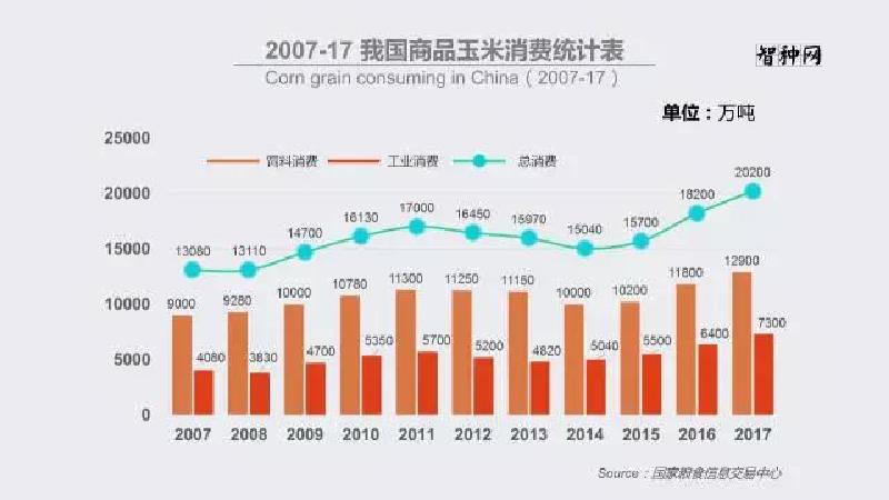 当下玉米产业供应链正在逆向打通,消费开始决定生产。养殖和玉米深加工的规模化倒逼种植端的产品单一化和区域化,加工标准化,产业协同化,需求倍增化,所以才导致 2017 年的商品玉米需求比 2015 年上涨 4500 万吨。主要就是因为后玉米临储时代,商品玉米的价格形成机制正逐步回归市场供求关系决定,所以市场化的产品需求消费形成了爆发式的需求增长。
