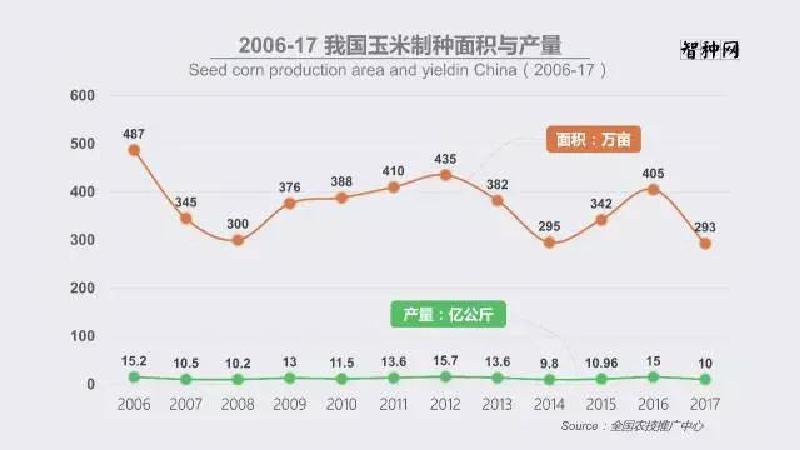 2006-2017 年的十二年里,我国玉米制种面积一直有一个规律,那就是制种面积一旦超过 400 万亩大关,第二年开始就会迅速回落,一旦回落到 300 万亩左右,制种面积就会开始新一轮的上涨。根据相关信息统计,2017 年我国玉米制种面积下滑到 293 万亩,同比下降 112 万亩,已经是 2006 年以来制种面积的第三个历史低点。本人预计 2018-2020 年我国玉米制种面积会继续降低,这个趋势会继续持续 2-3 年,但是下降幅度不会太大,底部应该在 250-280 万亩左右。过剩产能的市场化逐步出清也会同期在未来 2-3 年内完成。根据经济学原理,产能过剩行业普遍存在“散小乱弱”等问题,主要体现在产业集中度较低,产能利用率低下等方面。我们中国种业一直有一个魔咒,就是越过剩越制种,越制种越越亏损的“囚徒困境”。主要原因就是非市场化竞争主体企业较多,而且种子生产具有边际成本低,沉没成本高等特点,一旦停产,投资均变为沉没成本,损失更大。所以继续生产比停产的损失更小,同时由于生产规模的扩大反而会降低产品的平均成本,一些非市场化竞争主体企业为了摊薄单位产品成本,就继续扩大生产,进一步加剧了产能过剩局面。