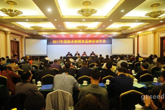 2018年1月5日—8日,全国农业技术推广服务中心在南宁分别召开了2017年国家水稻、棉花品种区试年会和国家水稻品种联合体试验总结会。各省(区、市)种子管理站(局)负责试验人员、国家水稻棉花品种区试主持人和抗性鉴定、品质检测、DNA指纹检测等单位负责人,国家农作物品种审定委员会稻专业委员会和棉花专业委员会部分委员,各国家水稻联合体试验牵头单位代表和联合体试验主持人参加会议。会议由全国农技中心品种区试处张毅处长主持,广西自治区农业厅粮油处高崇敏处长参加会议并致辞。