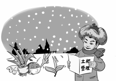 年近五旬的刘小兵,是高中毕业回乡种地的知识农民,每年坚持订阅各类科技报刊,同时坚持每天看天气预报。知道有降中到大雪的时候,他都会提早采取防冻措施。一是增设棚膜。为了更好地保护塑料大棚内栽培的蔬菜,他把“一层棚膜一层地膜”改成了“三棚一膜”,在大棚中增加了中棚和小棚,每层棚膜盖得严严实实。降温时,棚外寒气逼人,棚内却温暖如春。二是他选用了有机质含量高的生物有机肥,配施高含量的多元复合肥。三是做到大棚内土松草净,这样升温速度较快。所以,在冻害来临之后,这些预防措施很好地保护了他家的蔬菜。
