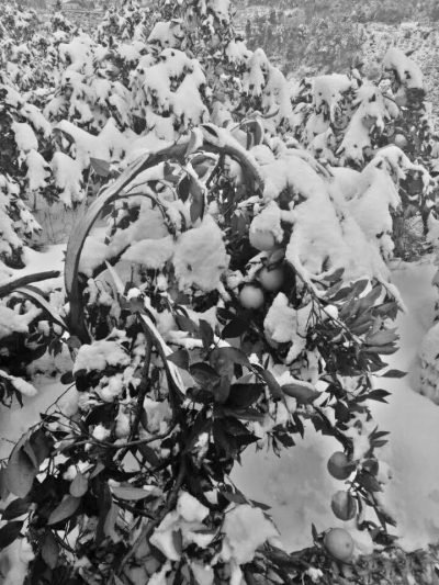 1月初的一场雪灾导致湖北省宜昌市秭归县郭家坝镇的柑橘受灾。资料图