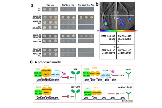 植物生长过程中各个发育阶段的转换和特定基因的表达对于植物生长非常重要,甚至会影响到植物尤其是农作物的产量,阐明植物发育时期的分子调控机理对于生物学基础理论和农业生产都具有重要的意义。以往的研究认为拟南芥两个表观遗传调控复合体Polycomb Group (PcG)和trithorax Group (trxG)通过拮抗作用来抑制或激活开花基因,从而控制营养生长到生殖生长期的转换。但是这两类蛋白在其他发育过程中的功能知之甚少。该研究通过分析PcG和trxG基因功能缺失的三突变体,首次发现trxG和PcG复合体的功能在苗期的种子基因调控中存在协同作用方式,而不是传统认为的拮抗作用。进一步的研究证明了trxG和PcG蛋白可以通过调控染色体的动态结构,协同抑制苗期种子发育相关基因的异位表达,从而维持植物正常的营养生长。研究结果对于揭示PcG和trxG介导的基因表达和沉默途径之间的相互作用机制以及植物发育时空表达调控的表观遗传调控新机理提供了重要依据。
