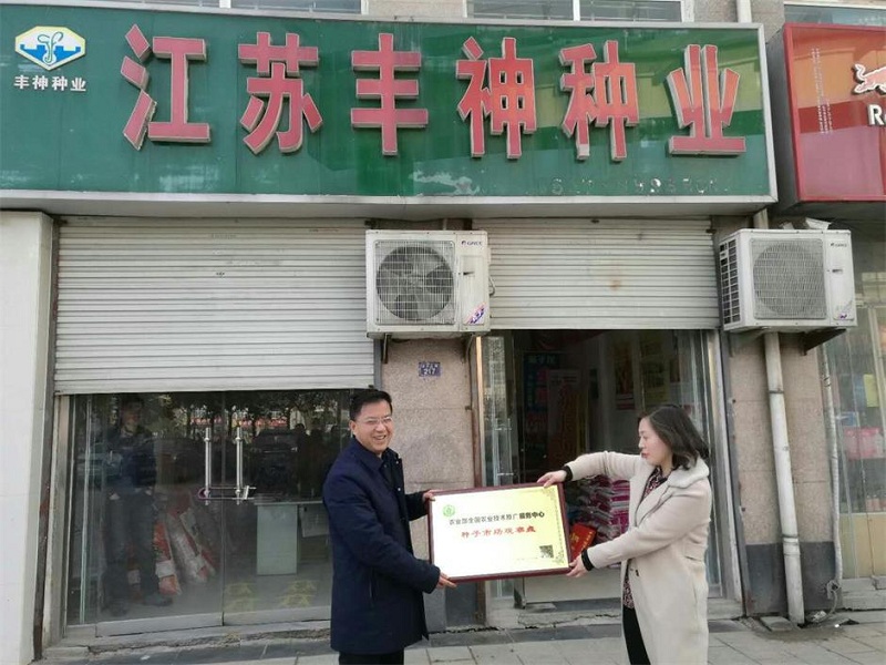 市场观察点”牌匾。沭阳县农委种子站、农业执法大队全体人员参加了授牌仪式。种子市场观察点区域代表性强,主要负责种子价格采集、市场行情上报等工作,为农业部提供最新的种子市场行情、市场动态的基础信息,在农业供给侧结构性改革动向中起到先导作用。沭阳县农委督促江苏丰神种业有限公司落实全国农技中心种子市场观察点工作要求,明确一名信息员,确保准时上报准确的