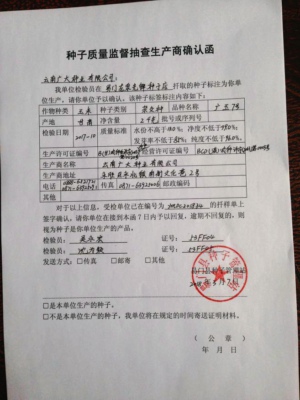 管理站和易门县种子管理站联合对辖区内种子经营户进行随机监管巡查工作,并扦取5个大宗主要农作物品种样品送省种子站进行品种真实性、品种纯度签定和品种