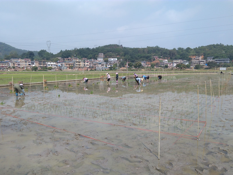 管理站工作人员在右江区东怀村那怀屯村民的大力支持下,认真做好早造鉴定圃的实施工作。今年早造鉴定圃共插