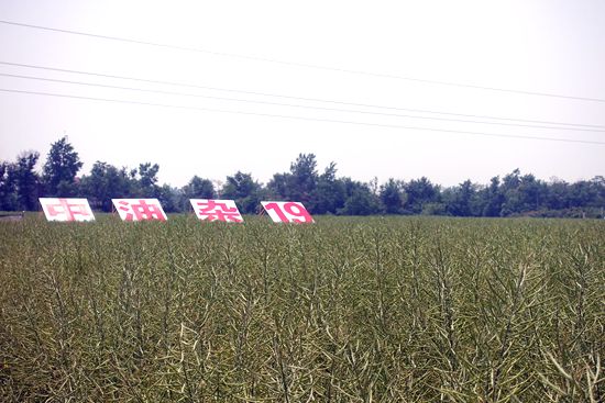 日前,中国农业科学院油料作物研究所在安徽省舒城县千人桥镇组织举行高油多抗适机收油菜新品种现场观摩会。经专家组现场测产,千人桥镇200多亩中油杂19示范方平均亩产高达252.7公斤,并表现出良好的抗病抗倒性,在大风多雨导致油菜灾害严重的今年实属不易。安徽省芜湖中和粮油种植合作社负责人倪守庚兴奋地向来自各地的合作社代表、种植大户和种子经销商介绍说:“2014年引进种植中油杂19,2015年收获时亩产达到290公斤,比其他高产品种高出25公斤以上。今年秋播我准备再次扩大种植规模。”。
