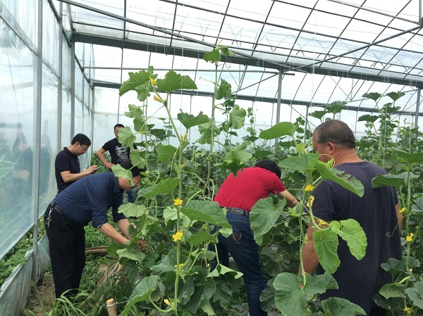 管理站站长林太赟参观了椒江区三甲街道街下村的西甜瓜基地,观看了各个西甜瓜品种的生长状况,了解各项准备工作的情况,并一起参与了给西甜瓜进行套网袋的工作,为展示会的到来做好准备。