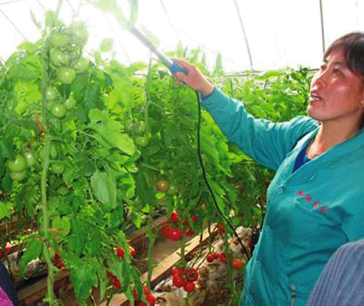省工省力每亩地授粉操作时间仅需30分钟左右,而采用喷花或蘸花方法需2-3个小时。同时菜农不需弯腰操作,降低了劳动强度,节约了劳动成本。