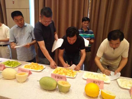 、35个甜瓜品种进行综合品鉴,评出了西瓜浙蜜8号、甜瓜红心脆等10个浙江省优质西瓜甜瓜品种。