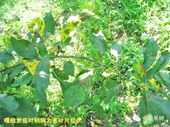 的秋梢嫩叶。斑点落叶病菌危害叶片后,轻者叶功能降低,重者叶片落掉,会严重削弱树势,影响成花,希望引起注意,尽管树上无果,也要及时打药防治。可用25%代锰·戊唑醇可湿性粉剂(低毒)500~750倍液喷雾。25%戊唑·异菌脲悬浮剂(低毒)1000~2000倍液喷雾;40%唑醚·戊唑醇水分散粒剂(低毒)2500~4500倍液喷雾;3%多抗·中生菌可湿性粉剂(低毒)稀释500~750倍喷雾;以上防治过程中建议配合阿尔比特8000倍一起使用效果更佳。