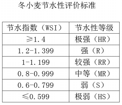 在广泛的试验鉴定基础上,品种是否节水抗旱,最终要由综合数据指标说了算,而这个指标就是“节水指数(WSI)”。“我们综合参试品种(系)的水处理产量和节水处理产量,以及对照品种的水处理产量和节水处理产量四个数值,通过公式计算得出参试品种的节水指数。”张文英介绍。同样,抗旱指数(DI)也是通过综合待测材料和对照品种在旱地和水地不同产量数值,通过公式计算得出的。