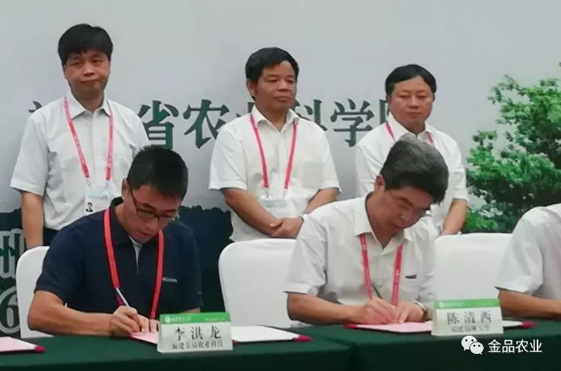 6月18日上午,在第十六届海峡项目成果交易会上,福建金品农业科技股份有限公司与福建农林大学战略合作协议签约仪式在福州海峡会展中心举行,金品农业李洪龙副总经理与福建农林大学园艺学院陈清西院长分别代表双方在合作协议上签名。