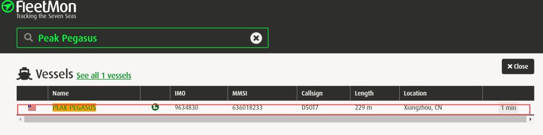 ▲11日,fleetmon网站显示的“飞马峰”号最新动态