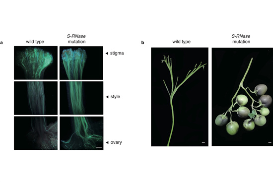 自然界中70%的马铃薯种质为二倍体,其丰富的遗传变异为“优薯计划”的实施提供了基础。但是二倍体马铃薯普遍存在自交不亲和的现象,限制了自交系的创制。要实现“优薯计划”,首先需要解决自交不亲和的难题。克服自交不亲和的传统方式是利用来自野生马铃薯中的自交不亲和抑制基因(S-locus inhibitor, 简称Sli),但是Sli基因被导入栽培种后会产生长匍匐茎、高龙葵素含量等一系列不良的农艺性状,增加了遗传改良的难度。为了寻找一种更有效的克服自交不亲和的方法,该团队创新性地利用基因组编辑技术解决这一难题。马铃薯的自交不亲和是由核糖核酸酶基因(S-RNase)控制的,该基因在不同材料中的多态性非常高,很难通过同源克隆的方法克隆到S-RNase基因的全长。研究人员通过对柱头转录组进行从头拼接,获得了S-RNase基因的全长序列,并利用基因组编辑技术对此基因进行了定点突变,获得了自交亲和的二倍体马铃薯,并通过自交获得了不含有外源片段的马铃薯新材料。利用该方法获得的自交亲和马铃薯新种质不含有任何野生基因组片段,可以直接应用到育种过程中,为“优薯计划”的顺利实施提供保障。