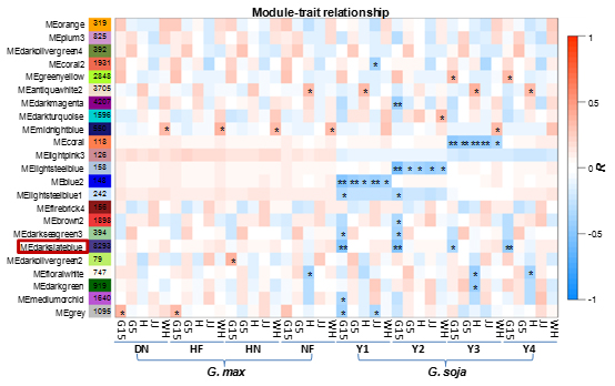 栽培大豆和野大豆间的基因共表达模块和差异表达基因