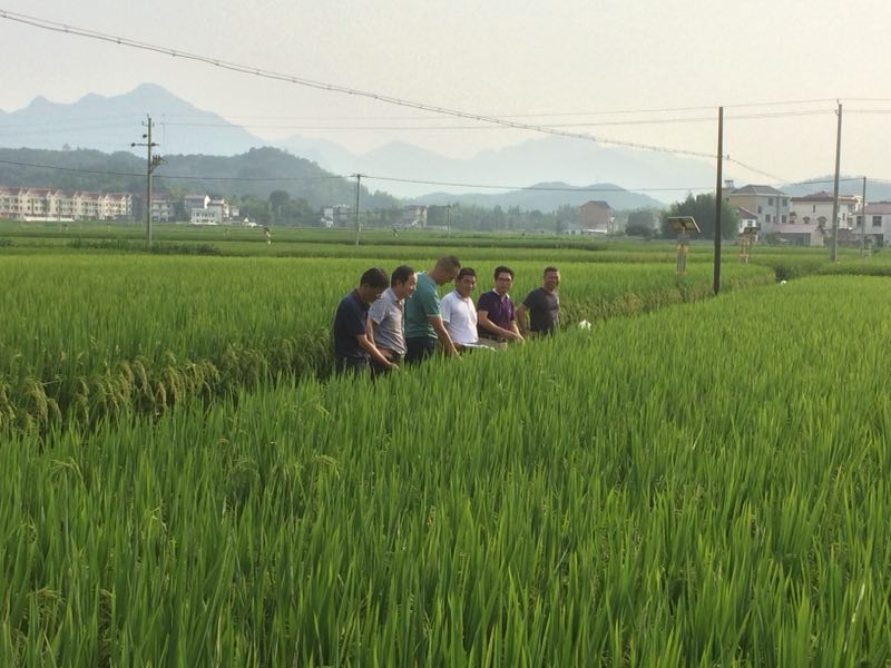 9月6日,杭州市种子总站前往建德查看水稻新品种生长情况。建德大同稻香小镇2017年被列入杭州市培育类特色小镇,全镇有高标准农田2.6万亩,省市级粮食功能区1.5万亩,同时还建有省级农作物品种展示中心和国家万亩粮食高产示范基地。今年,省、市、县三级种子部门安排水稻新优品种100余个,展示示范面积300余亩。调研组仔细察看了水稻品种展示现场,认真听取了建德种子管理站品种展示情况介绍,详细询问了展示品种的数量、长势及综合表现等情况。调研组对建德展示示范工作表示充分肯定,体现了展示基地很高的管理和技术水平,同时指出当前晚稻已进入灌浆期,后续要做好防虫害工作,着重预防稻丛卷叶螟和稻飞虱。其次要注意不要太早断水,否则易影响水稻千粒重,要求建德市相关人员切实加强水稻新品种展示管理,做好品种展示和秋收工作,实现粮食增产增收。