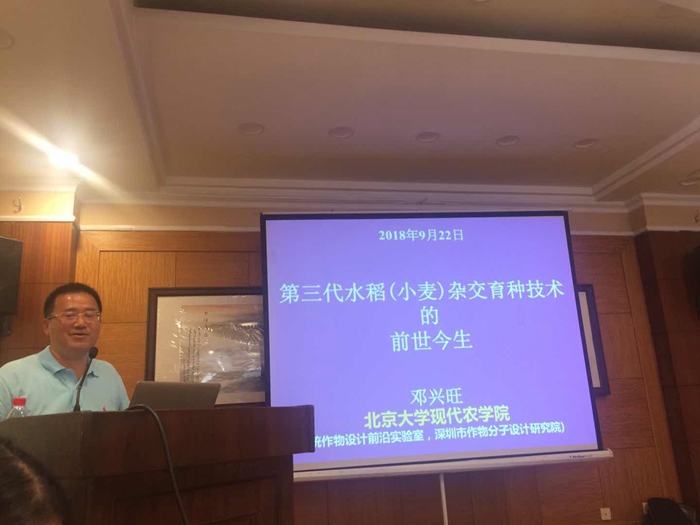 下午,召开了洁田稻相关技术报告会。邓兴旺院士介绍了智能不育制种技术,即通过在隐形雄性不育植株中糅合“不育恢复基因”、“失活花粉基因”和“荧光基因”组成的基因链,生产杂交水稻种子。深圳洁田模式科技有限公司总经理周君莉博士介绍了洁田模式,这是一种集成的种植模式,不仅销售抗除草剂的水稻种子,还提供专用除草剂、配套技术辅导等服务。仲衍种业副总经理谢永华,介绍了洁田稻的推广价值和发展前景。金色农华成都分公司经理司斌,从精准定位、精心布局、价值营销、服务聚焦四个方面介绍了水稻品种的营销经验。