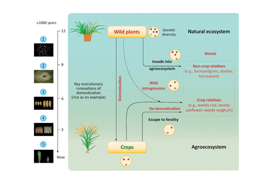 该文揭示了野生植物、作物和杂草之间存在复杂的进化关系。作物驯化自野生植物,人类祖先把许多“草”变成了作物,即便是恶性杂草,例如栽培稗等,同时,作物内部也可能出现叛逆者,成为与作物争光争肥的杂草,杂草稻就是这样一个案例。目前,主要作物基因组都已测序完成,随着杂草基因组的破解,为研究人员了解作物-杂草竞争和杂草超强竞争力的分子机制提供了绝佳机会。近年来,一些重要作物与杂草互作分子机制被揭示,例如杂草化感、作物去驯化(杂草化)、寄生杂草跨界调控等方面。同时,这些研究为作物育种和遗传资源利用指明了方向。(通讯员 陈鎏琰)