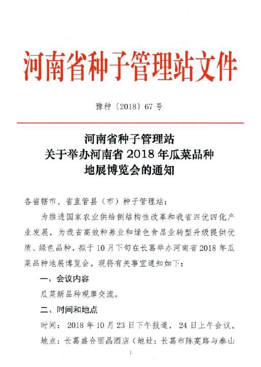 关于举办河南省2018年瓜菜品种地展博览会的通知