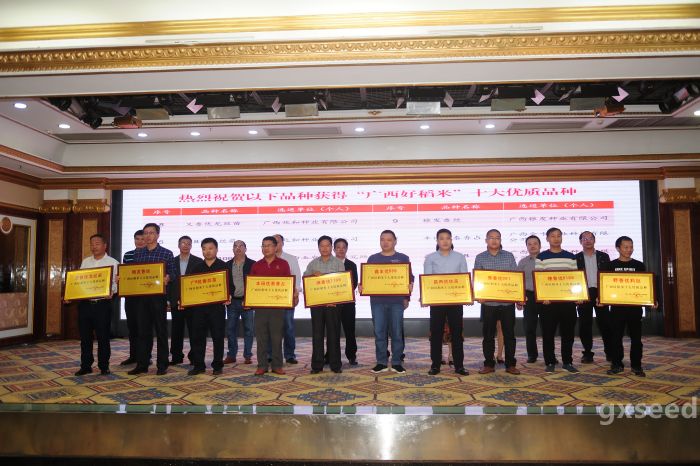 为进一步打造广西优质稻品牌,加快优质稻品种推广,2018年,第十五届广西“看禾选种”大会设立优质稻品种展示专区,在田间展示了一批优质稻品种。11月29日,自治区种子管理局组织专家对第十五届广西看禾选种大会好稻米专区种植的参选品种进行品尝鉴定评选,将参评的品种进行编号、统一蒸煮,按中华人民共和国国家标准(GB/T15682-2008)-稻谷、大米蒸煮食用品质感官评价方法,先趁热鉴定米饭的气味、外观结构,再通过咀嚼品尝适口性及滋味,进行打分。评选出广西好稻米十大优质品种,并于12月6日召开2018年广西好稻米鉴品推介会公布。