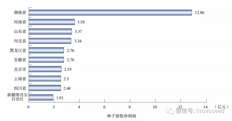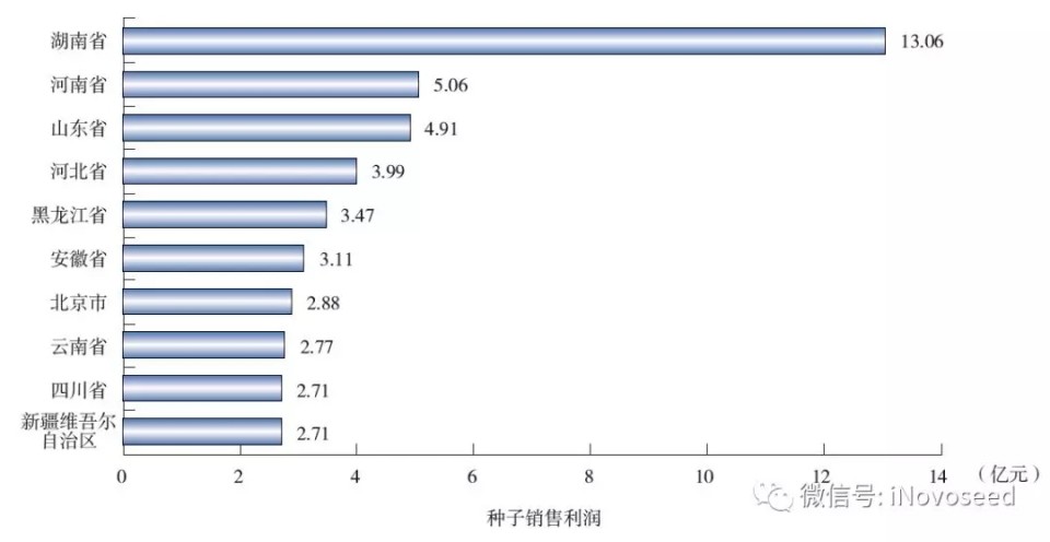 各地种子企业销售利润比较,湖南省种子企业利润总额16.78 亿元,其中种子销售利润13.06 亿元,净利润总额16.08 亿元,种子销售净利润12.86 亿元。