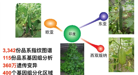 他们证实,黄瓜原产于印度,经过人类驯化选择成为人们喜欢的蔬菜,后来传播到不同地域,形成了三个主要类型:欧亚黄瓜、东亚黄瓜、西双版纳黄瓜。东亚黄瓜与印度黄瓜的分离时间是2000多年,与张骞出使西域给中国带来这个大众蔬菜的史实相吻合。