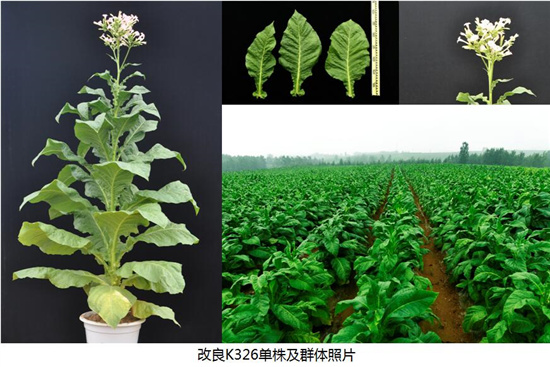 “改良K326”是在烟草基因组计划重大专项支持下,利用分子标记辅助选择结合常规育种定向改良主栽品种K326而培育的抗病毒病烤烟新品种。K326是我国第二大主栽烤烟品种,原烟品质优良,是卷烟企业的主选原料,但是易感烟草花叶病毒、黄瓜花叶病毒和马铃薯Y病毒。“改良K326”在保持原K326主要性状不变的前提下,对烟草花叶病毒免疫,抗黄瓜花叶病毒和马铃薯Y病毒,实现了兼抗三种病毒病的重大突破。该品种适合于我国K326主栽区种植,能够有效减少因病毒病发生造成的生产损失,是服务产区、保证烟叶质量安全、促进烟农增收的优良品种。
